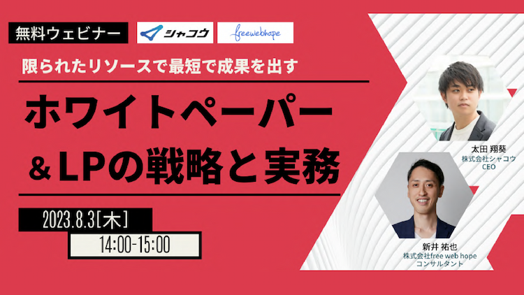 株式会社シャコウは、BtoB事業グロースに特化した伴走型グロースカンパニーとして「事業の方向性を決める戦略」・「事業の推進力となる実行能力」・「事業価値を正しく届けるクリエイティブ」の3つのスタジオでクライアント様の事業成長に貢献します。また、ホワイトペーパーマーケティングでリード獲得を最大化するノーコードCMSのWhiteLake(SaaS)と完全無料でリード獲得数を最大化するWhite Radar(メディア)を運営しています。
